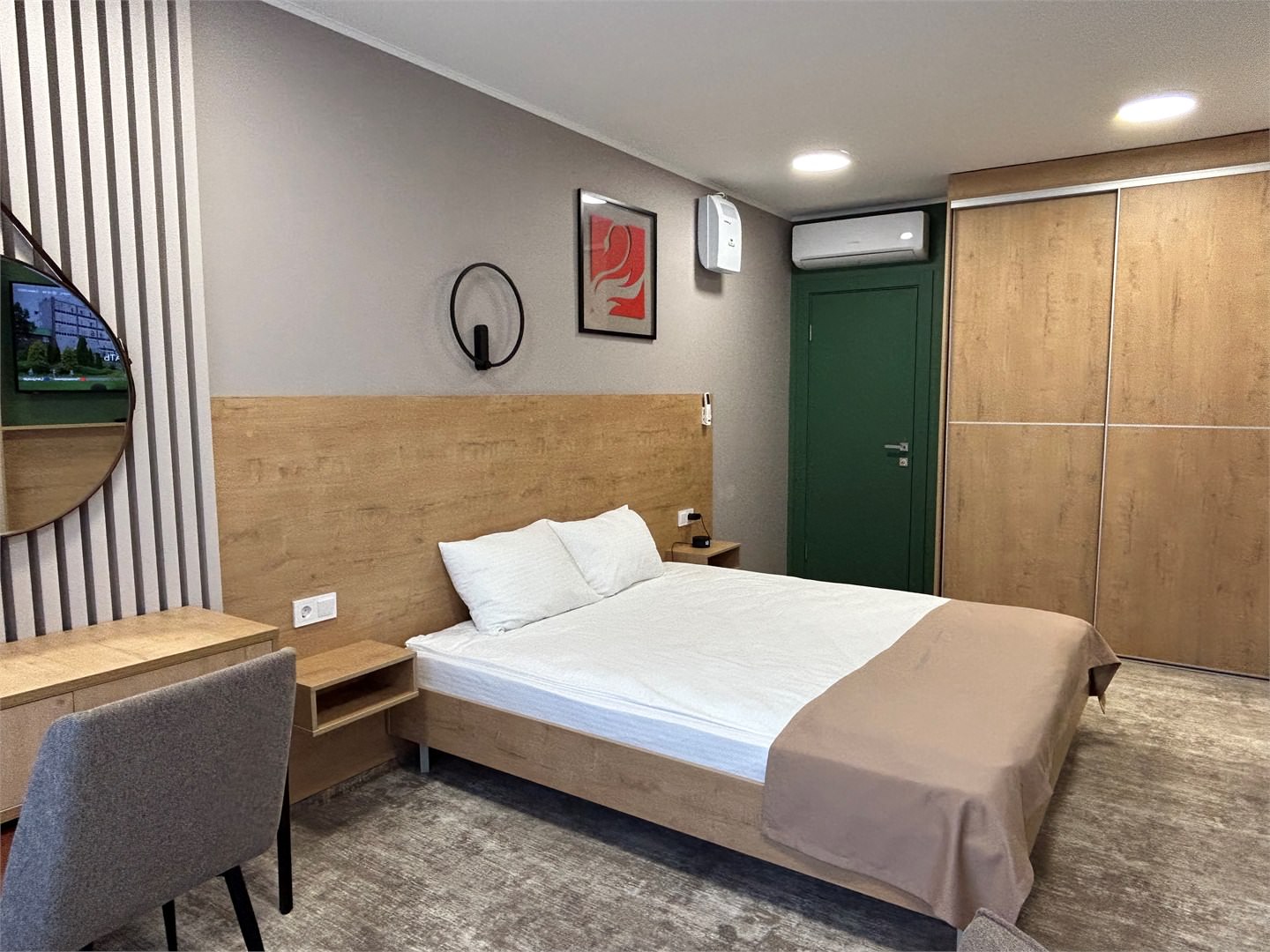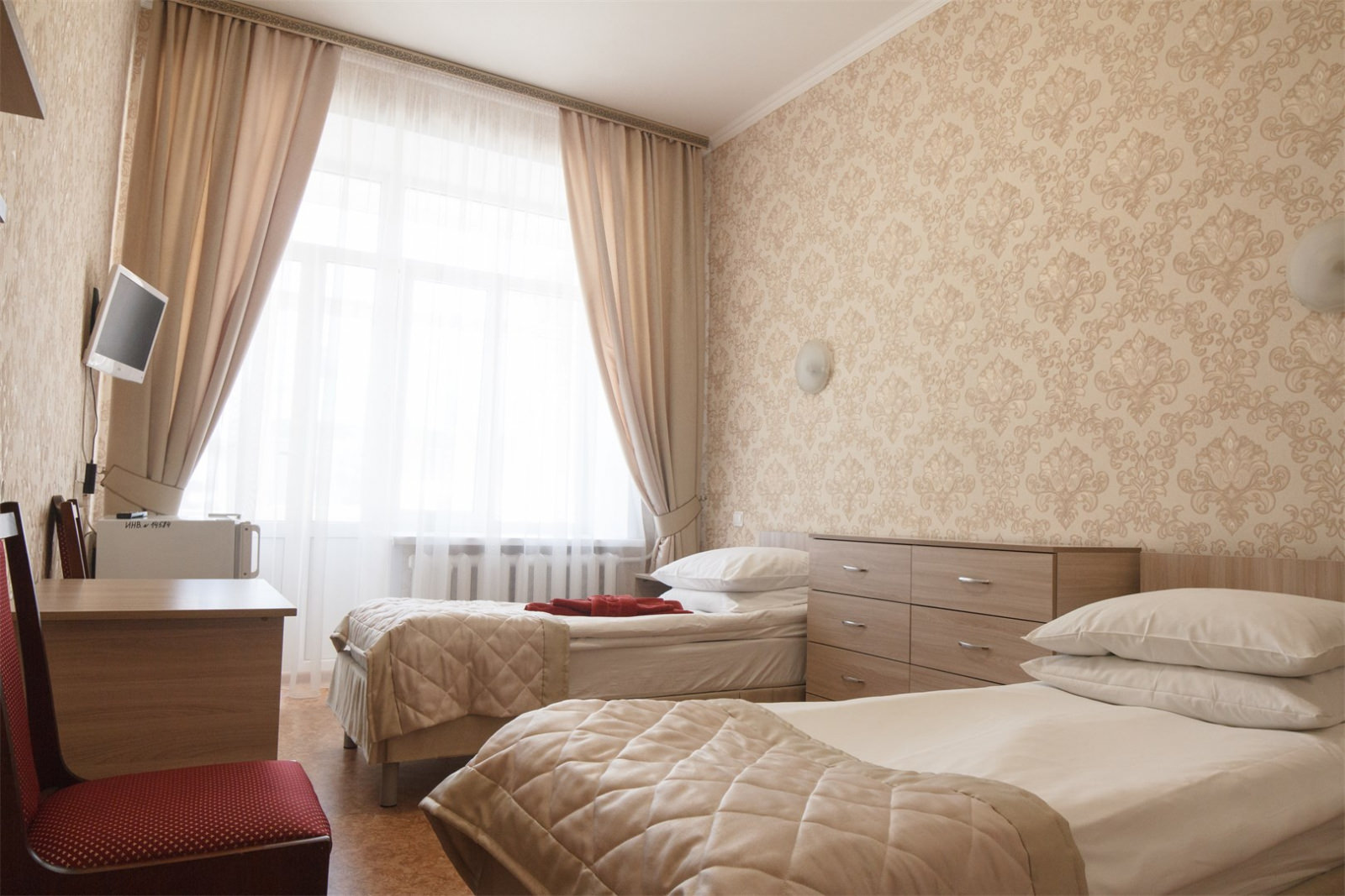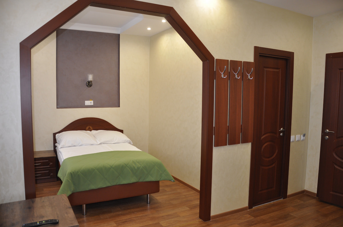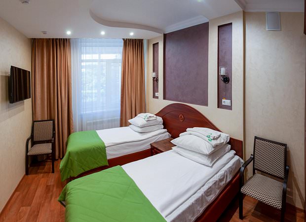 На благоустроенной территории разместились четыре современных спальных корпуса, три из них четырехэтажные и один — в пять этажей. Гостей ожидают комфортабельные номера с удобствами. В комнатах светлый интерьер, есть необходимая мебель, санузел с душем, плазменный телевизор, мини-холодильник и сеть wi-fi, в ряде номеров предусмотрены балконы. В каждом корпусе на этажах есть гладильные комнаты.
